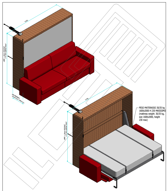 Spirit Sofa Motorizata është një sistem inteligjent salvaspazio me krevat me palosje horizontale, i kombinuar me një divan modern dhe mekanizëm motorizimi për hapje dhe mbyllje automatike. Ideale për arredimin e ambienteve të vogla, pa kompromentuar rehatinë, estetikën dhe teknologjinë.