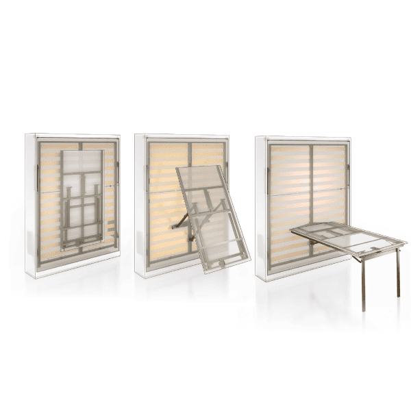 Swing Table është një zgjidhje moderne, inteligjente dhe elegante për ata që kërkojnë të shfrytëzojnë maksimalisht hapësirën e tyre pa bërë kompromis me stilin apo komoditetin. Ky sistem multifunksional dy-në-një integron një tavolinë të plotë pune ose ngrënieje me një krevat dopio të rehatshëm, duke e bërë atë ideal për apartamente të vogla, studio urbane, dhoma për mysafirë apo zyra të përshtatura për jetë të përditshme.