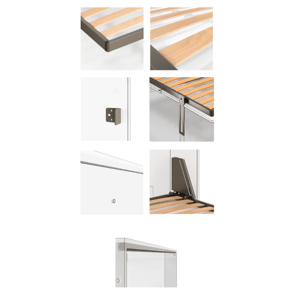 Këmbët e krevatit janë të fshehura brenda sistemit kur ai është i mbyllur dhe dalin automatikisht gjatë hapjes, duke garantuar mbështetje të fortë dhe pa ndërprerje në dizajn.